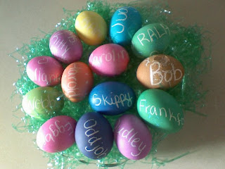 Mom swished Bob. Ha, ha. I like naming my Easter Eggs. (There was Fran, Judy, Ralph, Bob, Frankford, Dudley, Oddjob, Eggbert, Webby, Juliana, Ms. Kitty Hawk, Caroline, Harold and Skippy.)